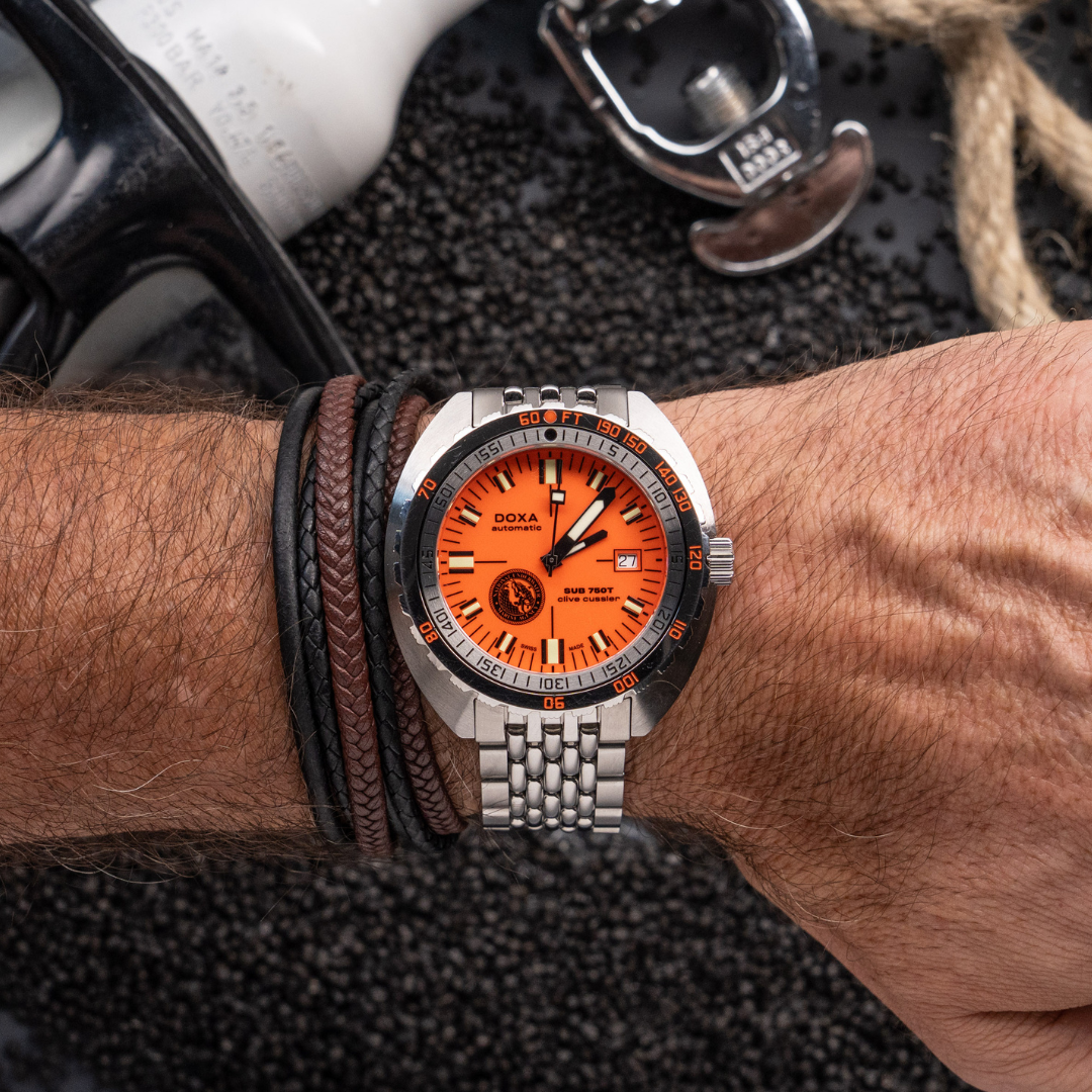 Delivered with both a stainless steel “beads of rice” bracelet and an orange NATO strap, and presented in a collector’s box inspired by vintage logbooks, the SUB 750T Clive Cussler is a tool, a tribute, and a timepiece worthy of a legend.