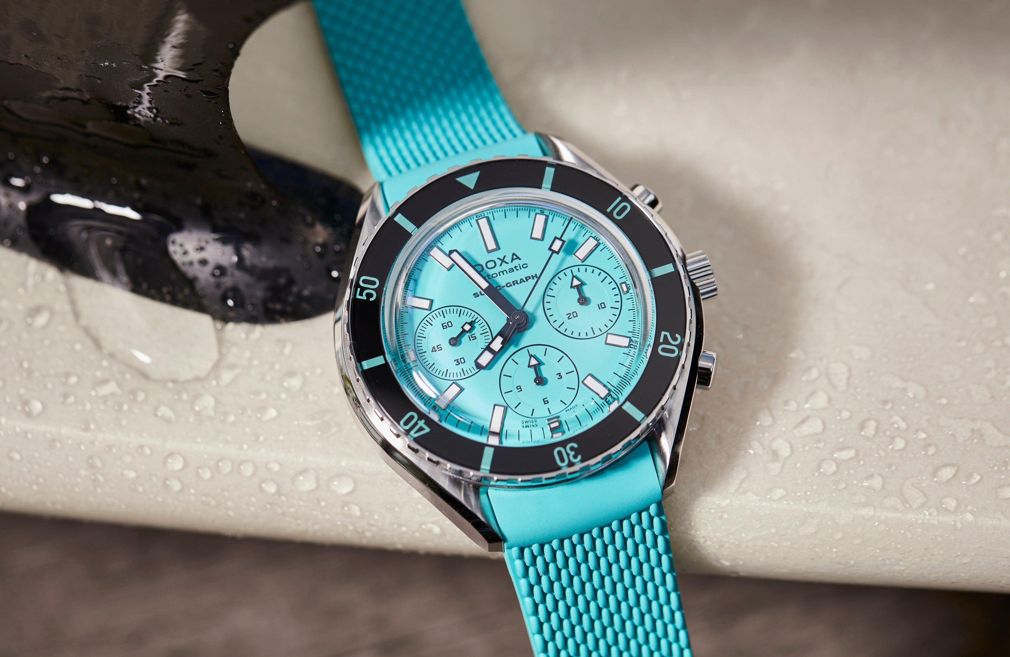 Available in 6 dial colors and offering the option of a tone-on-tone rubber strap or steel bracelet, the SUB 200 C-GRAPH sports the additional functionalities of a chronograph. This stainless steel watch features a scratch-resistant sapphire crystal with an antireflective coating.